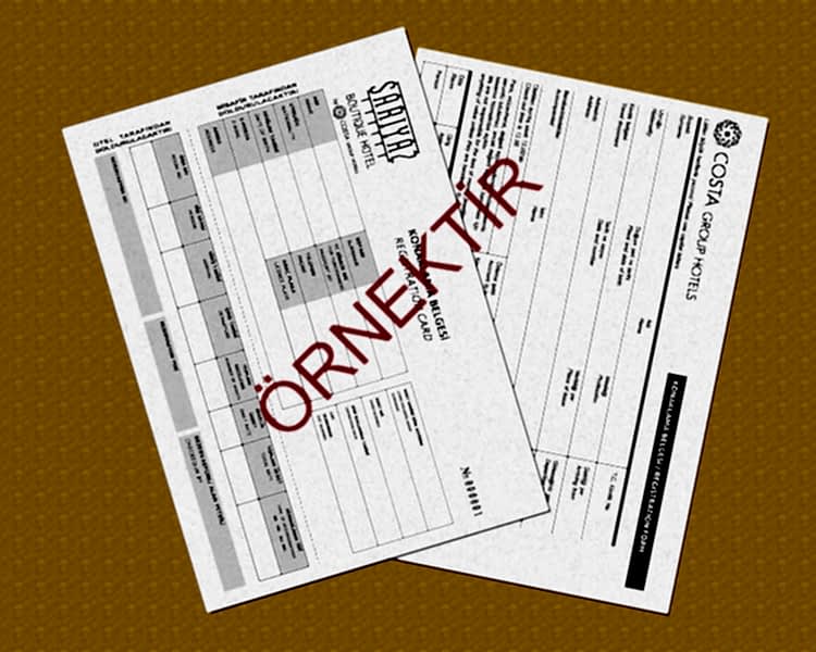 Bir tesise konaklamak için gelen müşteriye ilk doldurulan ve müşterinin ilk tanındığı belgedir. Kartın ön yüzü müşteriyi tanıtmakla birlikte, arka yüzüne kendisine yapılacak olan özel işlemler de not edilebilir, İndirim oranları veya özel fiyatlar vb.