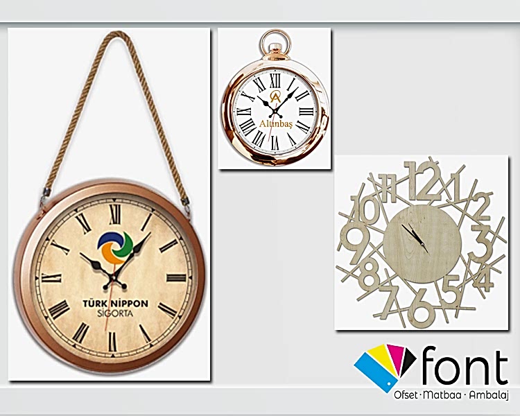 Reklamcılık sektörünün vazgeçilmezlerinden olan promosyon malzemelerinin arasına son yıllarda katılan saatler ise iş hayatına dahil olan ya da olmayan her insanın kullanabileceði araçlardır. Saatlerin genellikle orta kısımlarında tasarlanan firma adı, telefonları, adresi ve logosundan oluşan basit ama etkili tasarımlar ile sizin de müşteri portföylerinizi arttırmanız ve akılda kamanız kaçınılmazdır.